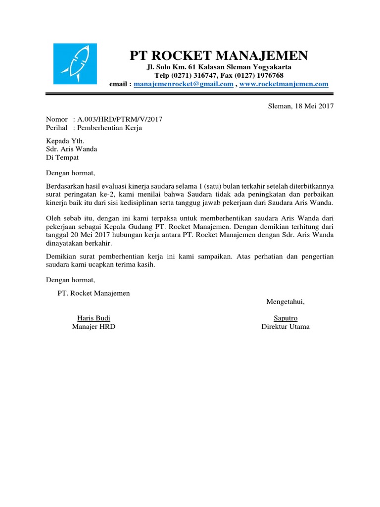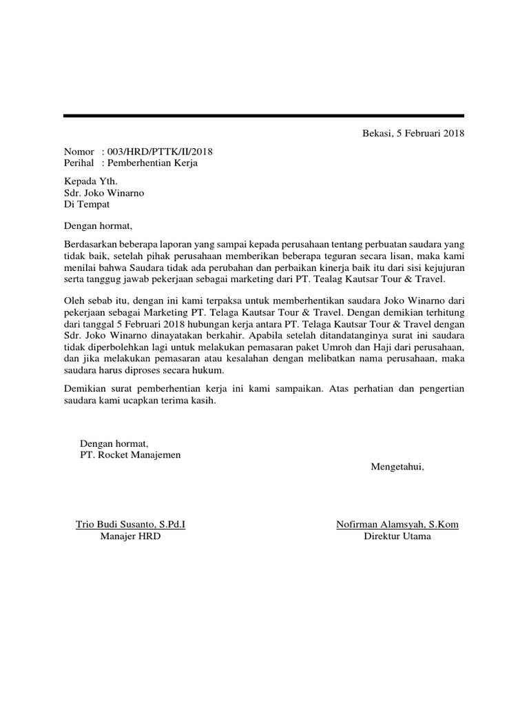 Contoh Surat Pemberhentian Kerja Oleh Majikan Letter 7saudara Com